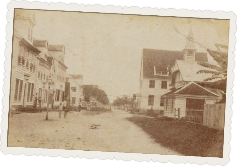 Foto rechtsboven: Wagenwegstraat omstreeks 1900. Fotoalbum 1927, archief Koninklijk Instituut voor Taal-, Land- en Volkenkunde (KITLV).