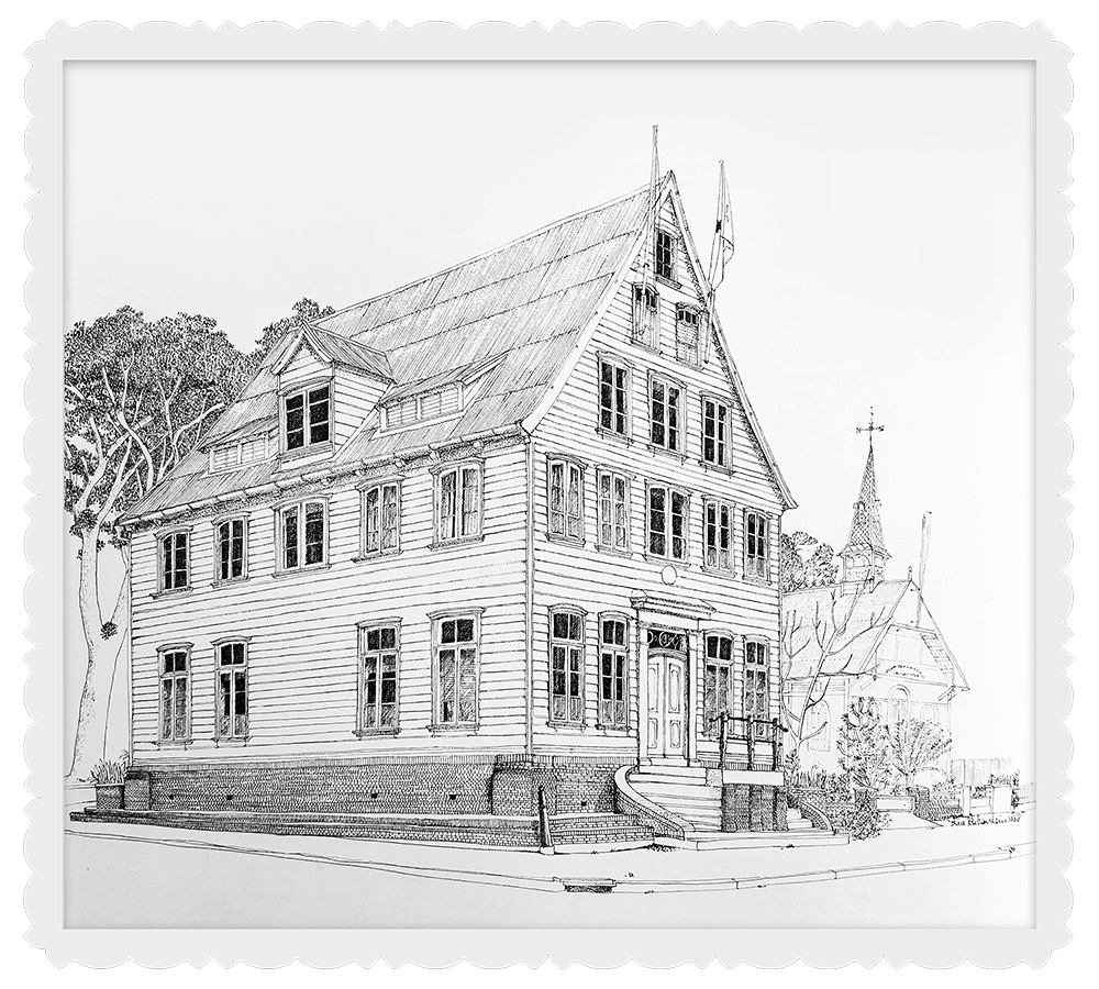 Pentekening, Thea Rubinstein, 1968. West- en zuidgevel.